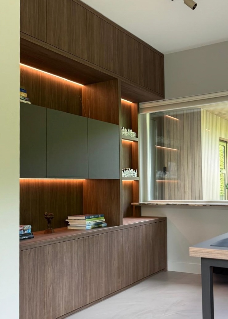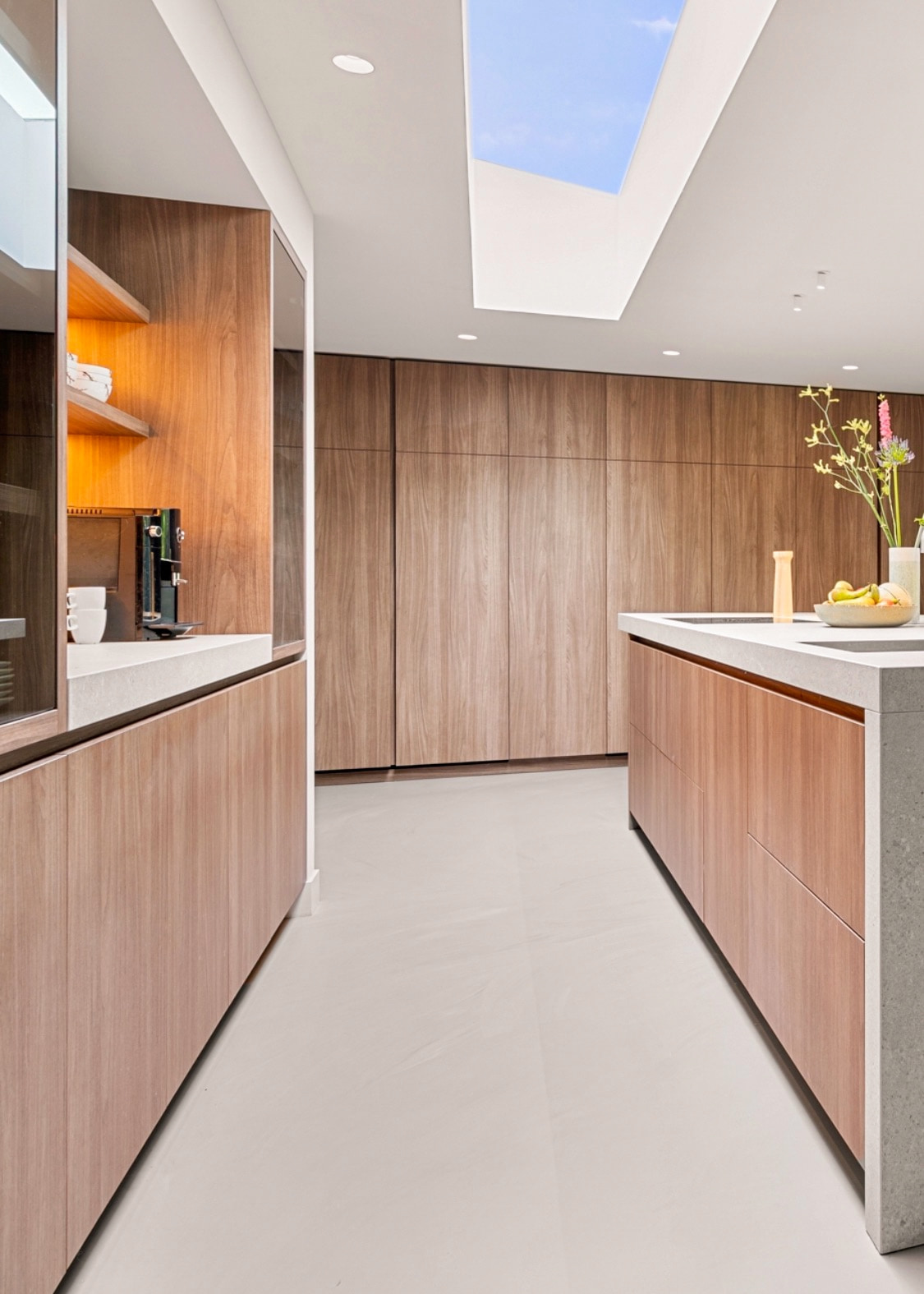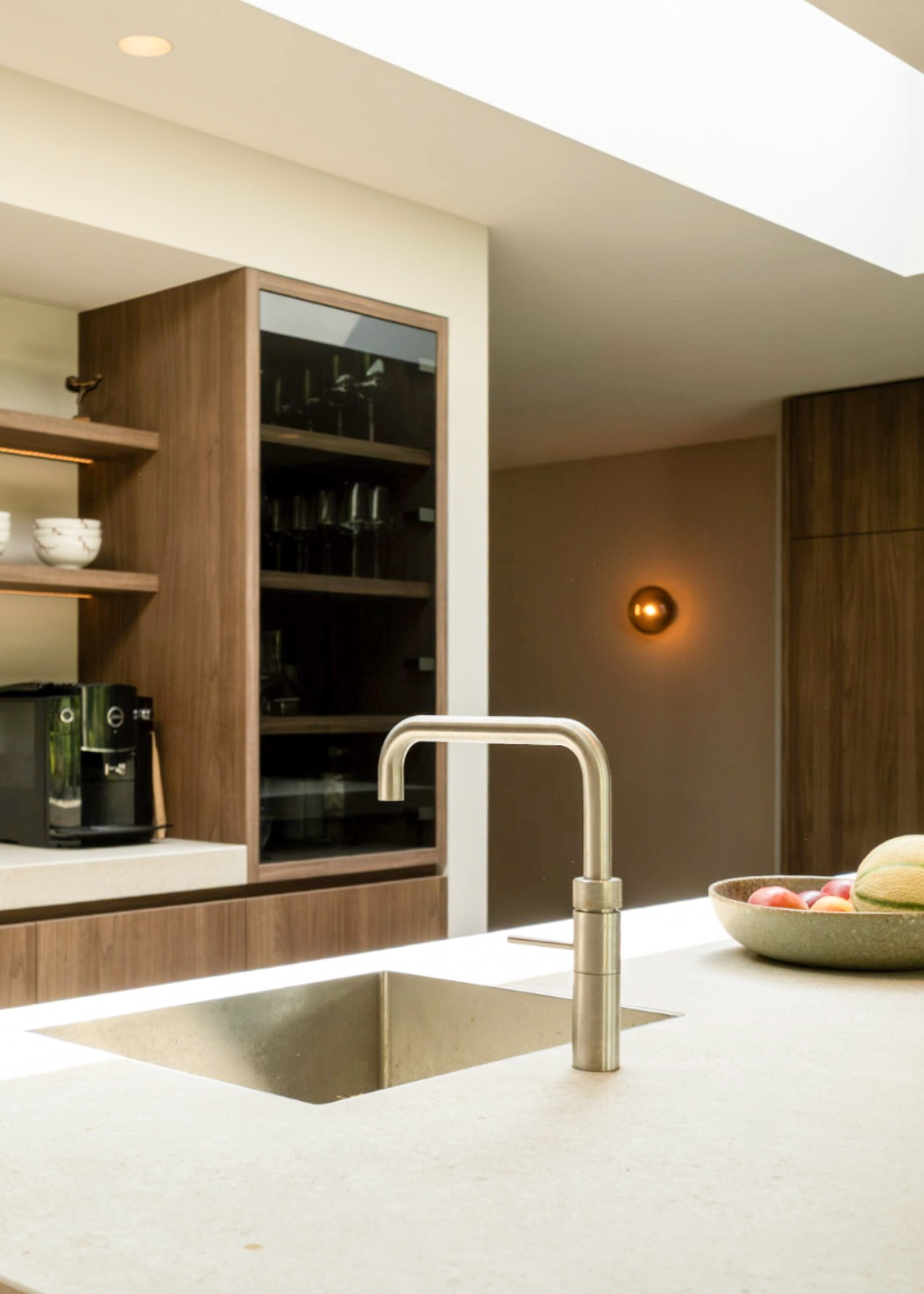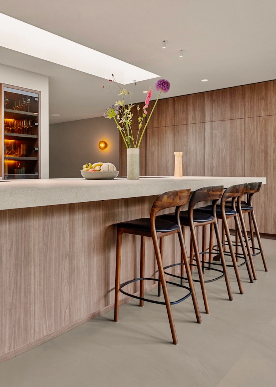 Een mooie samenwerking met House of Architects, aannemer VandenBrandhof, Maarten maatwerk en Hero interieurontwerp. En grondige verbouwing waarbij het binnenzwembad omgetoverd werd tot woonruimte en studio en er in de gehele woonetage eenheid gecreëerd is. Er is gewerkt met prachtige natuurlijke materialen. De bewoners wilden graag een lichte, rustige basis die ook warmte uitstraalt. Een luxe penthouse als inspiratiebron en de keuken als stijlvol middelpunt. Door mij ontworpen en op maat gemaakt door de meubelmaker. Van hetzelfde materiaal lieten we ook een prachtig thuiskantoor maken. De grote gebaren tonen de gastvrijheid van de bewoners die hun huis graag met vrienden en familie delen, maar vooral zelf heerlijk genieten van het eindresultaat. ’Make it simple but significant’
